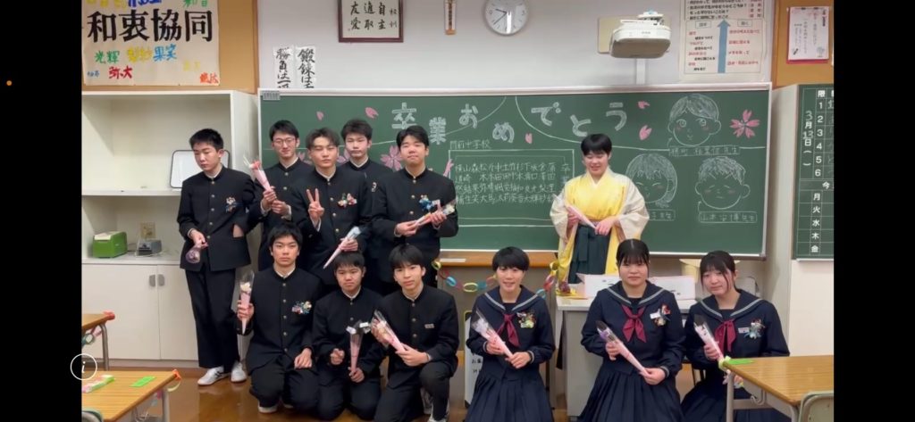 本事業は、福井イーストライオンズクラブによる能登半島地震被災地支援の一環として実施した青少年交流・支援事業である。福井市立森田中学校の「卒業生を送る会」に合わせ、同校2年生が不要となった布を再利用し手作りの花束を制作した。制作にあたっては、資源の再利用を通じて環境意識を高めるとともに、被災地への思いやりの心を育むことを目的とした。完成した花束は、福井イーストライオンズクラブ会員が石川県輪島市を訪問し、・輪島市立輪島中学校・輪島市立門前中学校・輪島市立東陽中学校の3校へ届け、卒業を迎える生徒たちへ贈呈した。贈呈の際には、福井市立森田中学校の生徒たちからの応援メッセージもあわせて届け、震災の影響を受けながらも前向きに歩む能登の生徒たちへ、同世代からの励ましとエールを伝える機会としたまた、本事業を通じて福井と能登の中学生同士の心のつながりを生み、未来を担う青少年が互いを思いやる気持ちを育む機会となった。贈呈を受けた学校関係者からは「被災地に寄り添う気持ちが伝わり、生徒たちの大きな励みになりました」との感謝の言葉をいただいた。また、花束制作に参加した福井市立森田中学校の生徒たちにとっても、被災地の現状を知り、同世代の仲間を思いやる心を育む貴重な学びの機会となった。本事業は、物資の支援だけでなく「心の復興支援」として、地域を越えた青少年の絆を育む意義深い取り組みとなった。